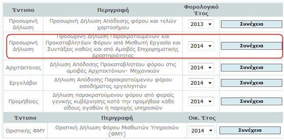Ξαναεπιλέγω την προσωρινή δήλωση 2014 (κουμπί «συνέχεια»)