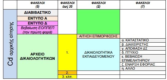 - cd με όλα τα σχετικά παραστατικά σε ηλεκτρονική μορφή ταξινομημένα όπως περιγράφεται με την παρούσα εγκύκλιο και συγκεκριμένα: Διαβιβαστικό, Έντυπο Α, Έντυπο Δ, Αρχείο δικαιολογητικών και βεβαίωση ΕΟΠΠΕΠ την πρώτη φορά.