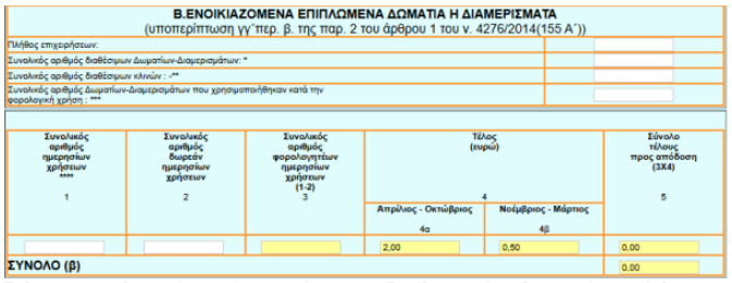 β) τα ενοικιαζόμενα επιπλωμένα δωμάτια διαμερίσματα της υποπερ. γγ) της περ. β) της παρ. 2 του άρθρου 1 του ν. 4276/2014,