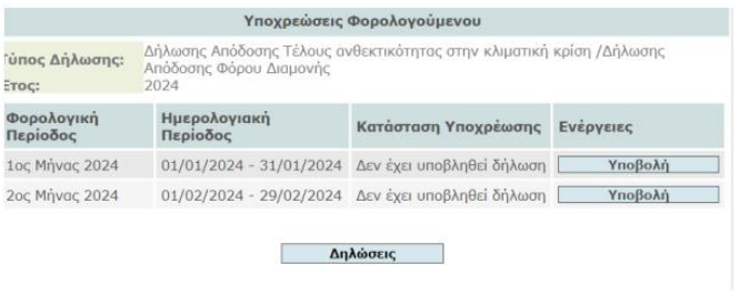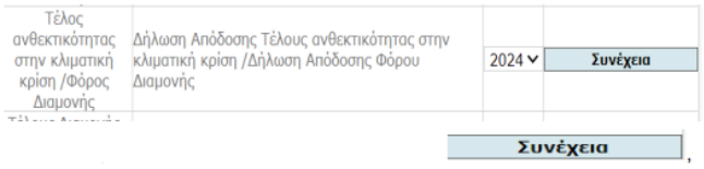 Από το μενού «Φορολογικές Υπηρεσίες», «Τέλη και Ειδικοί Φόροι», επιλέγετε η «Δήλωση απόδοσης τέλους ανθεκτικότητας στην κλιματική κρίση».