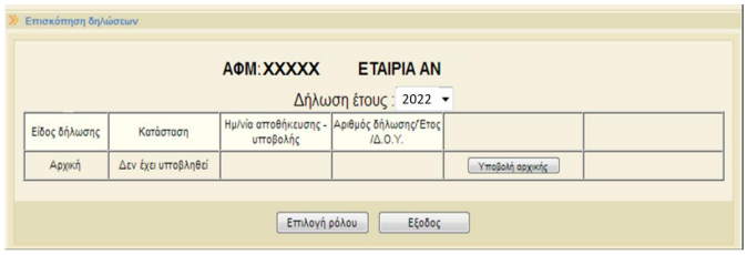 Και με το πλήκτρο «Υποβολή αρχικής» εισέρχεται στη φόρμα υποβολής της δήλωσης.