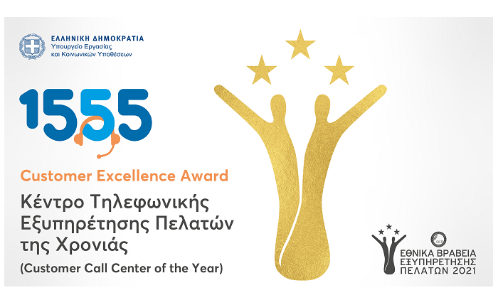 Σημαντική διάκριση απέσπασε ο νέος Ενιαίος Αριθμός Εξυπηρέτησης Πολιτών 1555 για εργασιακά και ασφαλιστικά θέματα του Υπουργείου Εργασίας και Κοινωνικών Υποθέσεων.