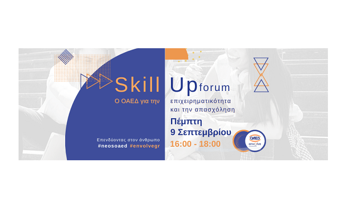 Το πρώτο SkillUp Forum για την Απασχόληση και την Επιχειρηματικότητα του ΟΑΕΔ θα διεξαχθεί στη Θεσσαλονίκη, στο πλαίσιο της 85ης Διεθνούς Έκθεσης Θεσσαλονίκης, σε συνεργασία με το Envolve Entrepreneurship.