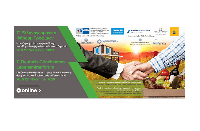 Με 103 e-B2B επαφές ολοκληρώθηκαν οι εργασίες του 7ου Ελληνογερμανικού e-Φόρουμ Τροφίμων, που διοργάνωσαν 26 και 27 Νοεμβρίου από κοινού, μεταξύ άλλων, το Ελληνογερμανικό Εμπορικό και Βιομηχανικό Επιμελητήριο και η Enterprise Greece.