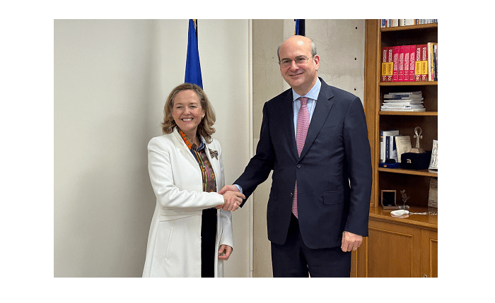 Ο Υπουργός Εθνικής Οικονομίας και Οικονομικών Κωστής Χατζηδάκης συναντήθηκε σήμερα με την Πρόεδρο της Ευρωπαϊκής Τράπεζας Επενδύσεων (ΕΤΕπ) Νάντια Καλβίνιο, στο πλαίσιο της επίσημης επίσκεψης που πραγματοποιεί στην Ελλάδα.