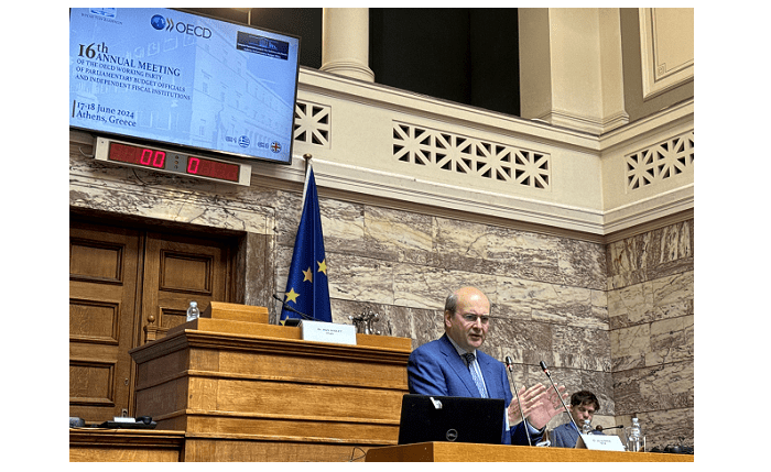 Ομιλία του υπουργού Οικονομικών σε εκδήλωση που διοργάνωσε το Γραφείο Προϋπολογισμού του Κράτους στη Βουλή.