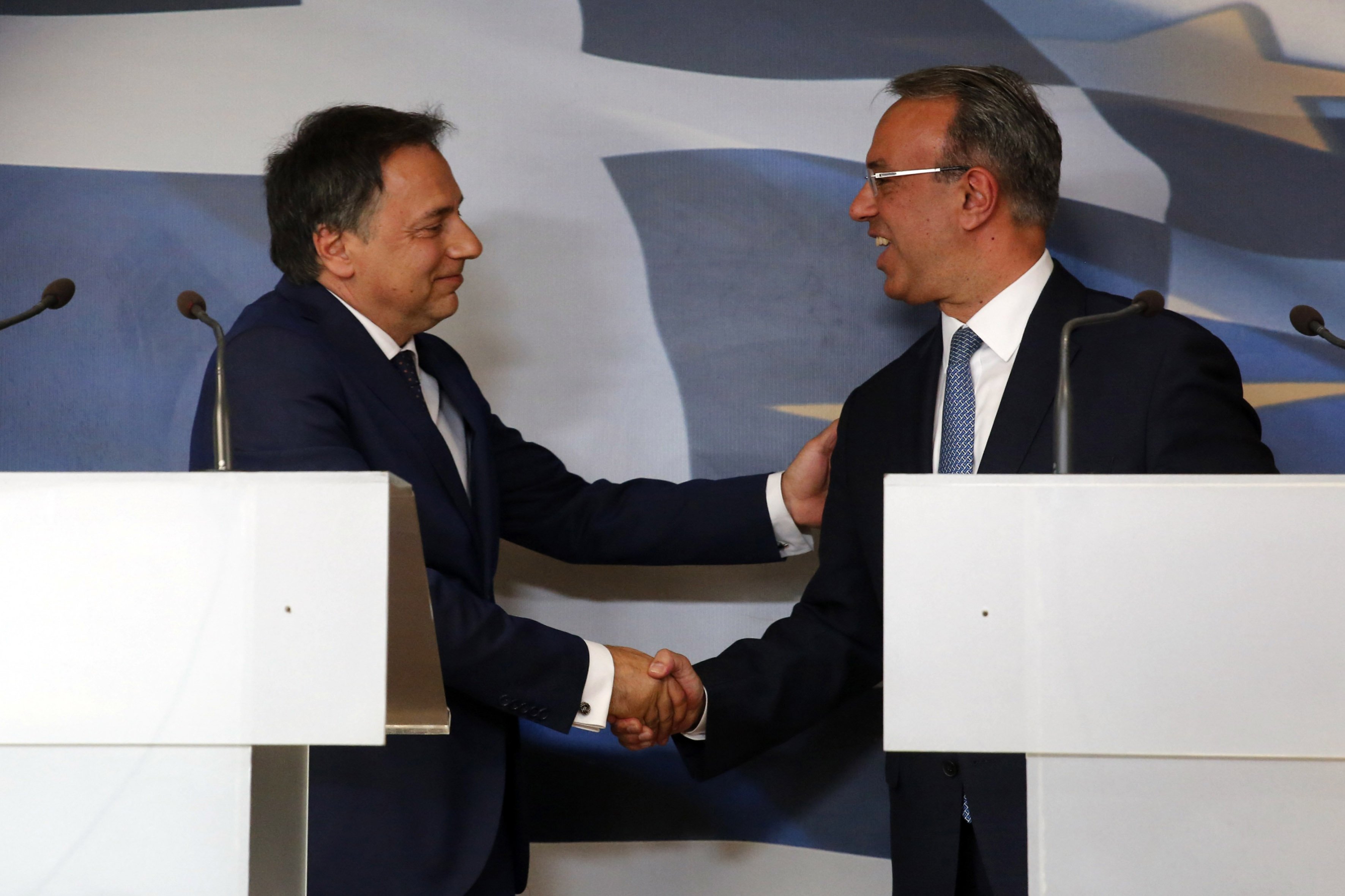 Δηλώσεις του τέως Υπουργού Οικονομικών κ. Χρήστου Σταϊκούρα και του Υπουργού Οικονομικών κ. Θεόδωρου Πελαγίδη κατά την τελετή παράδοσης-παραλαβής του Υπουργείου Οικονομικών.