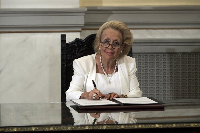 Υπηρεσιακή πρωθυπουργός ορκίστηκε η Βασιλική Θάνου Χριστοφίλου, η οποία αμέσως μετά την τελετή ορκωμοσίας υπέγραψε το πρωτόκολλο ανάληψης των καθηκόντων της.