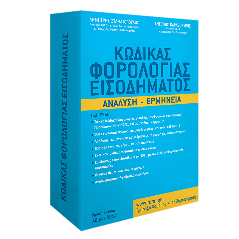 Σε συνέχεια της έκδοσής μας "Κώδικας Φορολογίας Εισοδήματος - Ανάλυση - Ερμηνεία" των Δημ. Σταματόπουλου - Αντ. Καραβοκύρη, κυκλοφορεί ΔΩΡΕΑΝ ένθετο 34 σελίδων των συγγραφέων με επικαιροποιημένα θέματα - σημειώσεις επί των θεμάτων του βιβλίου. Αποθηκεύστε το στον υπολογιστή σας!